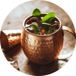 Experience the refreshing zing of a perfectly crafted Moscow Mule cocktail—Vodka, ginger beer, and lime—blending into a crisp and invigorating harmony that will tantalize your taste buds.