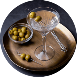 - Garnish with two olives.