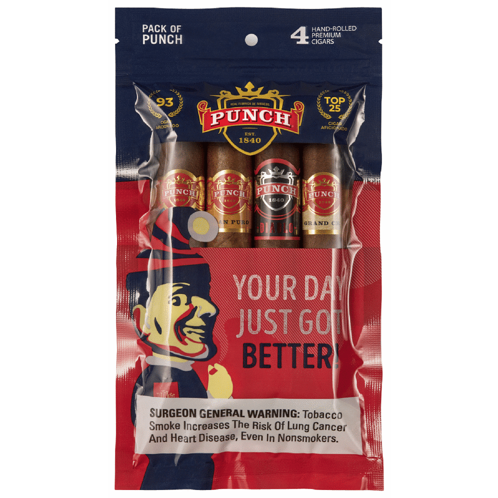 Dominican Republic - This 4 cigar assortment of the legendary Punch brand is chock-full of 90+ rated gems. It runs the gamut on flavors and strengths. You are bound to find a favorite amongst these smokes. Resealable pack keeps cigars fresh for 3-4 months.
